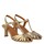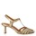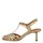 Supersmukke højhælede guldfarvede sandaler fra Angulus. Sandalerne har en fin skulpturel hæl og en justerbar rem med spænde rundt om anklen. Derudover har de rund snude med en masse fine remme henover forfoden, som danner et fint mønster.