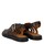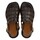 Lækre mørkebrune skind sandaler fra Angulus. Sandalerne er superbehagelige at gå i med deres bløde polstrede skindsål. De har firkantet snude og en justerbar rem med spænde om anklen. Derudover minder de om gladiastor sandaler med deres fine remme henover forfoden, som danner et mønster.