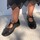 Fineste ballerinaer i blødt håndflettet skind med hulmønster i sort fra Angulus. Ballerinaerne har firkantet snude og lukkes over vristen med skind strop, som kan bindes til en sløjfe for en fin detalje. Der er bløde og vatterede indersåle, samt fleksible gummi ydersåle for dejlig komfort.
