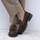 Supercool loafers i mørkebrunt ruskind fra Billi Bi. Loafersne har en chunky sål med hæl, rund snude og fast hælkappe med en lille strop. Derudover har de en udvendig detaljesyning med kontraststikninger på forfoden samt en lille rem med udskæring henover.