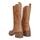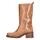 Håndlavede skindstøvler i lys cognacfarvet fra Billi Bi. Støvlerne er designet i en lys cognacfarvet skind, med firkantede høje snuder. Der er dekorative syninger på det mellemhøje skaft, og på ydersiden øverst har de et indsnit samt en strop. De har chunky blokhæle og indvendige komfortable forede såler.