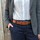 Lækkert bælte i cognacfarvet skind med sølvspænde. Det er designet i et enkelt look med hulmønster i midten af bæltet og på bæltestroppen, samt et firkantet spænde.