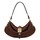 Supersmuk taske i brunt ruskind med fine detaljer fra Ganni. Tasken har en aflang buet silhuet og en fast hank i glat skind med fine stikningsdetaljer. Derudover har den et stort todelt rum, som lukkes med en flap med magnetknap, som har en rem i glatskind hele vejen rundt om tasken og et stort guldfarvet Butterlfy logo på fronten. Tasken har et lækkert luksuriøst look, og er perfekt til det, du lige skal have med på farten.