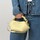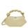 Eksklusiv taske i den fineste gule nuance fra Ganni. Tasken er sekskantet og designet med tone i tone Butterfly logo, samt i en genanvendt skindkvalitet med et flettet håndtag af strenge og en stor knude. Der er to rum hvoraf der er en kortlomme i det ene, og magnetlukninger i begge. Bou tasken har justerbar rem, der både kan bruges som crossover og skuldertaske. Derudover er der en firkantet guld metal ring med indgraveret GANNI Butterfly logo.