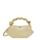 Fineste Bou Mini taske i smuk sart gul nuance fra Ganni med tone i tone Butterfly logo. Der er justerbar rem, der både kan bruges som crossover og skuldertaske, derudover indeholder den et stort rum med en kortlomme og indvendig magnetlukning. Tasken er designet sekskantet, i smukt genanvendt skind og har et snoet håndtag med håndflettet knude, samt en guldfarvet metallisk terning med indgraveret GANNI Butterfly logo.