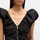 Supersød sort top fra Ganni. Toppen har v-hals samt v-udskæring i nakken. Den er gennemlynet på fronten med en sølv to-vejs lynlås og har puf-effekt på skuldrene. Derudover har den i halsen, nakken, ærmegab og siderne en masse små fine rynker i materialet, hvilket giver en helt vildt fin visuel effekt.