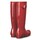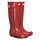 Lækre røde gummistøvler med blank overflade fra Hunter. Gummistøvlerne har et langt skaft med en strop samt spænde på ydersiden og Hunters logo på fronten. Derudover har de rund snude, en lille hæl og skridsikker sål.