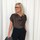 Smuk mørkebrun bluse i skinnende satin fra Imperial. Blusen har bådudskæring med draperinger ned for og korte ærmer uden skuldersøm.
