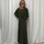 Smuk kjole i den fineste army fra Imperial. Kjolen har smukke store ærmer uden skuldersøm og med dybe ærmegab. Ærmerne er fæstnet både på fronten og bagpå kjolen, hvilket skaber fine store draperinger i materialet. Kjolen har masser af vidde henover barmen, men er figursyet med en skjult lynlås i siden. Derudover har den rund halsudskæring med slids, som lukkes med en enkelt stofbetrukket knap foroven. Den har også en høj slids på fronten og til kjolen medfølger der et aftageligt bælte med store guldfarvede spænder, du kan anvende i taljen.
