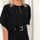 Superelegant sort kjole fra Imperial. Kjolen har rund halsudskæring med slids i halsen, som lukkes med en knap foroven. Derudover har den masser af vidde henover barmen, og dybe ærmegab samt ærmer, uden skuldersøm, som er fæstnet både på fronten og bagpå, hvilket skaber smukke store draperinger i materialet. Den er figursyet og har skjult lynlås i den ene side i taljen samt en høj slids på fronten nederst. Derudover medfølger der et bælte med guldfarvede spænder, du kan bruge til at understrege din talje.