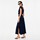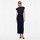 Elegant navy kjole fra Imperial. Kjolen har lige udskæring i halsen samt v-udskæring i nakken. I den ene side sidder der en skjult lynlås, så kjolen er let at tage af og på, og i den anden side har den fine små læg, hvilket skaber smukke draperinger i materialet. Hvis man vil understrege sin talje yderligere, kan man bruge det fine bælte med dyreprint, der hører med. Derudover dækker kjolen det øverste af skuldrene og har en høj slids forneden i den ene side.