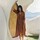 Boho inspireret hørkjole i smuk rustfarvet fra Indi & Cold. Kjolen er designet i en lækker og blød hørkvalitet, i et afslappet look. Den har v-udskæring og lukkes med slåom, samt vingeærmer til albuerne. Der er vidde ned i det lange skørt.