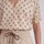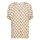 Smuk bluse i en lækker let bomuld med mønster fra Leveté Room. Blusen har v-hals, som fortsætter ned i en knapåbning med tone-i-tone knapper. Derudover har den korte raglanærmer med små rynker på skuldrene, og som afsluttes med en elastikkant samt flæse forneden.