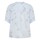 Fineste lyseblå skjorte med mønster fra Leveté Room. Skjorten er i en lækker let økologisk bomuld, som falder smukt. Den har kinakrave i halsen og små rynker i materialet på fronten af skuldrene. Derudover er den gennemknappet med tone-i-tone knapper og har korte ærmer med manchetter forneden og små rynker øverst på skuldrene.
