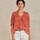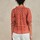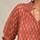 Ari Print S/S kortærmet bluse i smuk brændt nuance fra M.A.B.E. Blusen er lavet i en let og luftig bomuld, med et fint print og et bohemian look. Den har rund hals med en opretstående krave, i form af en smal flæse og derunder smockdetaljer. Der er snører over en slids foran og den har en løstsiddende silhuet. Raglanærmerne er korte og afsluttet med elastik der danner en lille flæse.