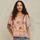 Aubrie blusen i boho look fra M.A.B.E . Blusen er designet i et let og blødt bomuld/silke mix, med det smukkeste print. Den har v-hals med snører og kvaster, samt et bærestykke på fronten. Der er voluminøse vingeærmer med små læg ved skuldrene.