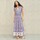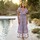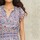 Smuk bomuldskjole fra M.A.B.E. Kjolen har det fineste farverige blomstermønster og feminine detaljer. Den har en dyb v-udskæring i halsen, som lukkes foroven med to bindebånd med fine kvaster forneden. Derudover har den dekorative flæseærmer og stiklommer i siderne. Kjolen er let figursyet i taljen med et bredt stykke med elastikbånd, som giver kjolen den fineste silhuet og skørtet er delt op i paneler med en sød flæsekant på tværs.