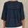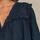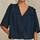 Feminin mørkeblå skjorte med blonder fra M.A.B.E. Blusen er lavet i en let, blød og åndbar bomuldskvalitet, perfekt til de varmere måneder. Den har en v-hals og skjult trykknaplukning, der er kantet med en smal blonde. Der er smukke allover broderier og voluminøse korte frillærmer, afsluttet med en blonde.
