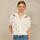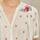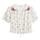 Fineste skjorte med broderier fra M.A.B.E. Skjorten er designet i en let og creppet kvalitet, med korsstings broderier i flotte farver. Den har v-hals og lukkes med små lyse knapper, samt små læg under bærestykkerne både for og bag. De korte ærmer er voluminøse og afsluttet med elastikkant. Nederst på skjorten er der bindebånd, hvor man kan justere bredden.