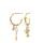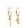 De flotte Arden creoler øreringe fra Maanesten. Øreringene har begge en snoet og dekorativ form med vedhæng i en smeltet struktur. Derfra hænger der vedhæng bestående af firkløvere, sommerfugl og smukke sten.