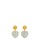 Søde guldbelagte øreringe fra Maanesten. Øreringene er designet med en rund plade foroven, som har et fint lysegrønt hjerte som vedhæng.