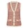 Skøn strikvest fra Mos Mosh. Vesten er strikket i et smukt hulmønster i den fineste farvekombination. Den har v-hals med bølget ribkant og er gennemknappet med guldfarvede knapper. Derudover har den to påsyede lommer med knap på fronten og rib med bølget kant i ærmegab samt nederst på kropen.