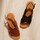 Skønne sandaler i en smuk cognac nuance fra Angulus. Sandalerne har rund snude, polstret indersål og en fleksibel ydersål i rågummi med en lille hæl. Derudover har de to brede stropper i håndflette skind, som krydser hinanden over forfoden samt en lille justerbar skindstrop med spænde om anklen.