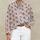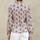 Den fine Aster skjorte med print fra M.A.B.E. Skjorten er designet i en blød og luftig bomuldskvalitet, printet med blomster og blade i skønne farver. Den har kinakrave i form af en kort flæse med lange bånd, man kan vælge at binde. Derudover er der skjult knaplukning og lange ærmer afsluttet med knapmanchet og flæser.