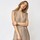 Smuk sommerkjole fra Co'couture. Kjolen er i en lækker lysebrun viskoseblanding og falder smukt. Den har fine detaljer som smock på fronten af skuldrene, og et lille flæseærme som fortsætter ned både foran og bagpå kjolen. Derudover har den et aftageligt smalt stofbælte, som kan bruges til at fremhæve taljen. Kjolen har kinakrave med v-hals og stiklommer i siderne.