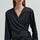 Smuk sort bluse i skinnende materiale fra Second Female. Blusen har v-hals, og er med slå-om, hvor den både bindes indvendigt i den ene side og udenpå i den anden side med to bindebånd. Derudover har den en lille skulderpude ved skuldrene og lange ærmer med masser af vidde, som afsluttes med en bred manchet forneden, som kan justeres i bredden vha. to stofbetrukne knapper. Hvis du er vild med sæt, kan du style den med de matchende Glari bukser fra samme brand.