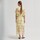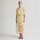 Den fineste sommerkjole fra Second Female. Kjolen er i en transparent lysegul viskose med et abstrakt solsikke mønster og har en aftagelig lysegul underkjole. Den har kinakrave med en slids i halsen, som lukkes med en stofbetrukket knap foroven. Derudover har den tre løbegange med snøre i taljen, som bindes i siderne og kan justeres alt efter, hvilken silhuet man ønsker. Kjolen har fine lette sommerfugleærmer, som falder elegant ned og dækker overarmene.