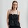 Raffineret top i sortt blødt lammeskindskind fra Second Female. Toppen har justerbare stropper og skjult elastikkant foroven og elastik i taljen, hvilket giver den en smuk silhuet. Derudover har den en en opretstående kant foroven og er med foer.